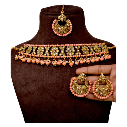 ₹ 2,130Sale price ₹ 660Peach Pearl Kundan Jadau Ch...