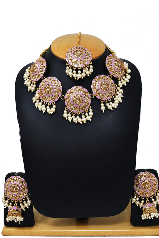 ₹ 1,674Sale price ₹ 837Pink Pearl Kanthi Set in Gold