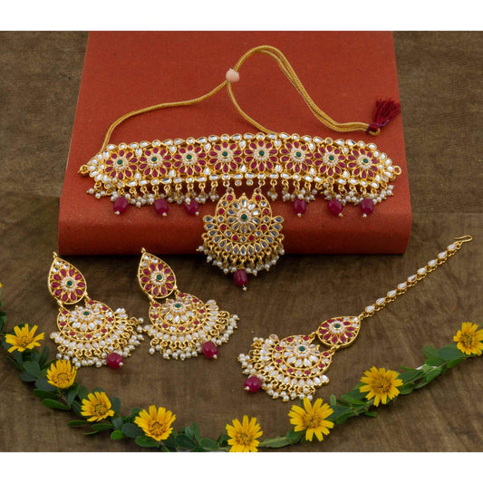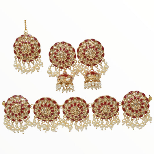 ₹ 2,130Sale price ₹ 660Red Pearl Kundan Jadau Chok...