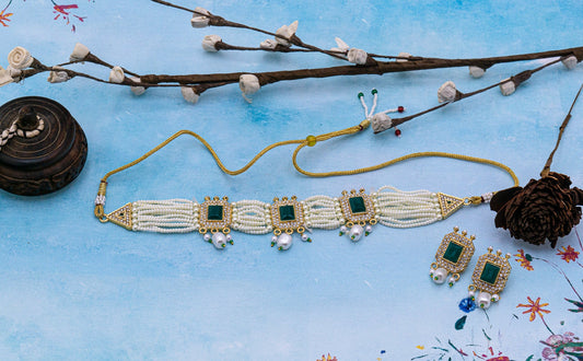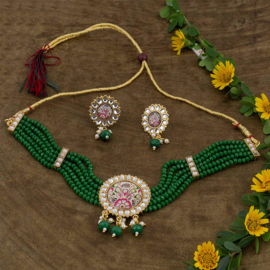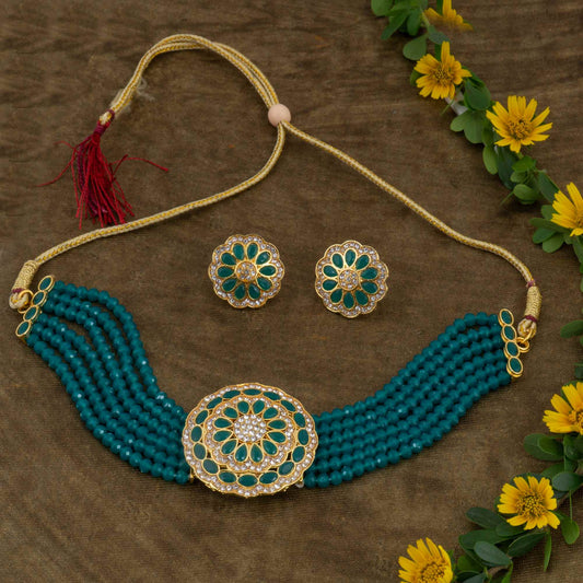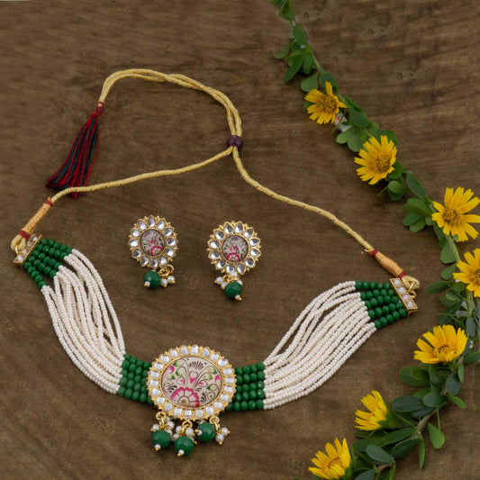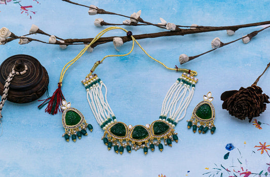 Sold outRegular price ₹ 541Regular priceUnit price / per₹ 1,082Sale price ₹ 541Lustrous AD Green Moti Choker