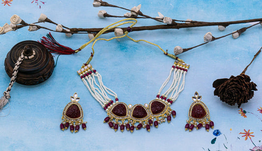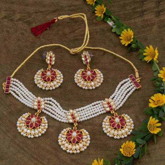 ₹ 1,674Sale price ₹ 837Pink Pearl Kanthi Set in Gold