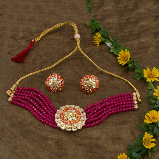 Sold outRegular price ₹ 837Regular priceUnit price / per₹ 1,674Sale price ₹ 837Pink Pearl Golden Kanthi Set