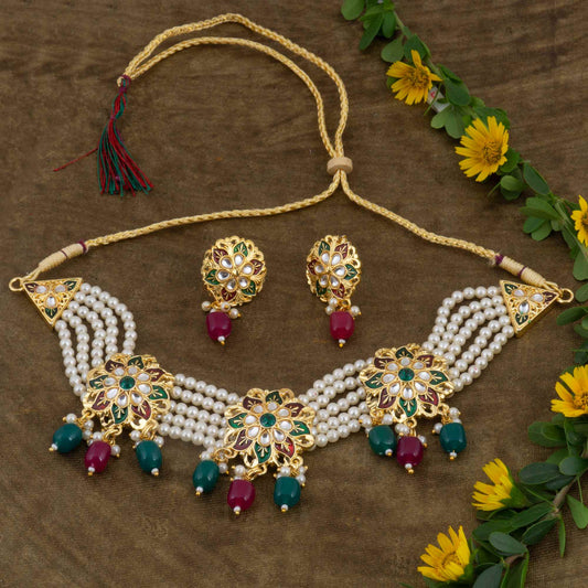 Sold outRegular price ₹ 399Regular priceUnit price / per₹ 1,199Sale price ₹ 399AD, Pearl, Gold Choker Ense...