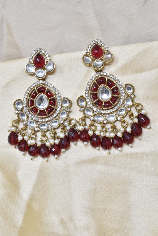 Ethnic Gold Plated Kundan Chandbali Earrings for Women, Traditional Indian Jhumka Drop Earring Se...