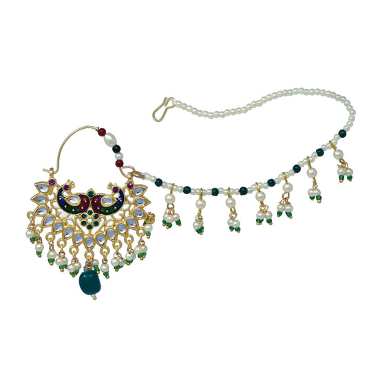 ₹ 949Sale price ₹ 349Peacock Kundan Nath: Pearl-...