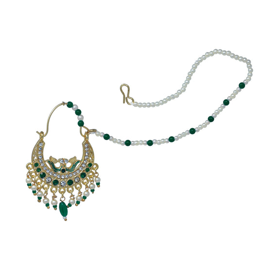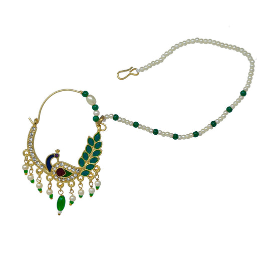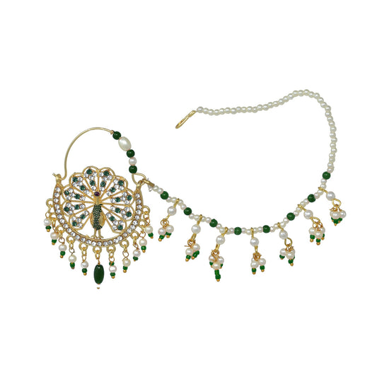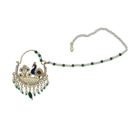 Regular price ₹ 349Regular priceUnit price / per₹ 949Sale price ₹ 349Peacock Kundan Nath: Emeral...