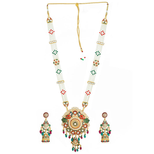 Sold outRegular price ₹ 699Regular priceUnit price / per₹ 2,097Sale price ₹ 699Peacock Meenakari Pearl Lon...