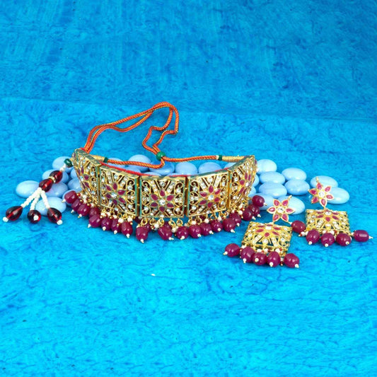 ₹ 1,000Sale price ₹ 430Maroon Kundan Kanthi Neckla...