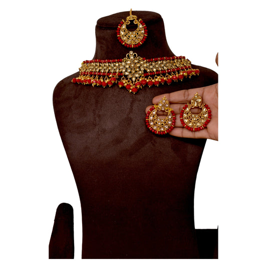 ₹ 2,453Sale price ₹ 737Jadau Kundan Red Pearl Sple...
