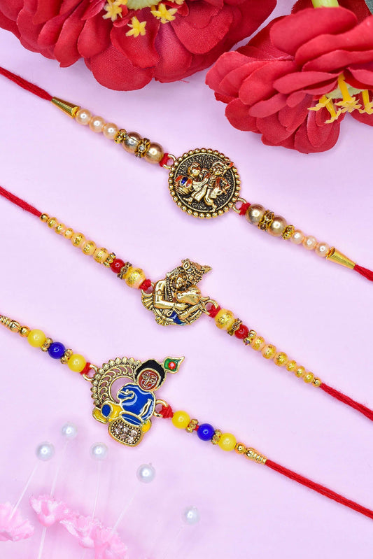 Regular price ₹ 152Regular priceUnit price / per₹ 869Sale price ₹ 152Krishna Set of 3 Rakhi with...