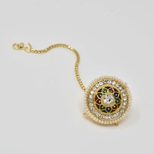 Sold outRegular price ₹ 163Regular priceUnit price / per₹ 548.90Sale price ₹ 163Rajputi Pearl AD Stone Borla