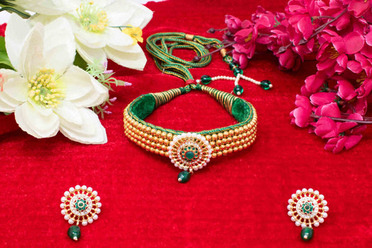 ₹ 4,946.70Sale price ₹ 1,648Pearl, Kundan, Green Bead N...