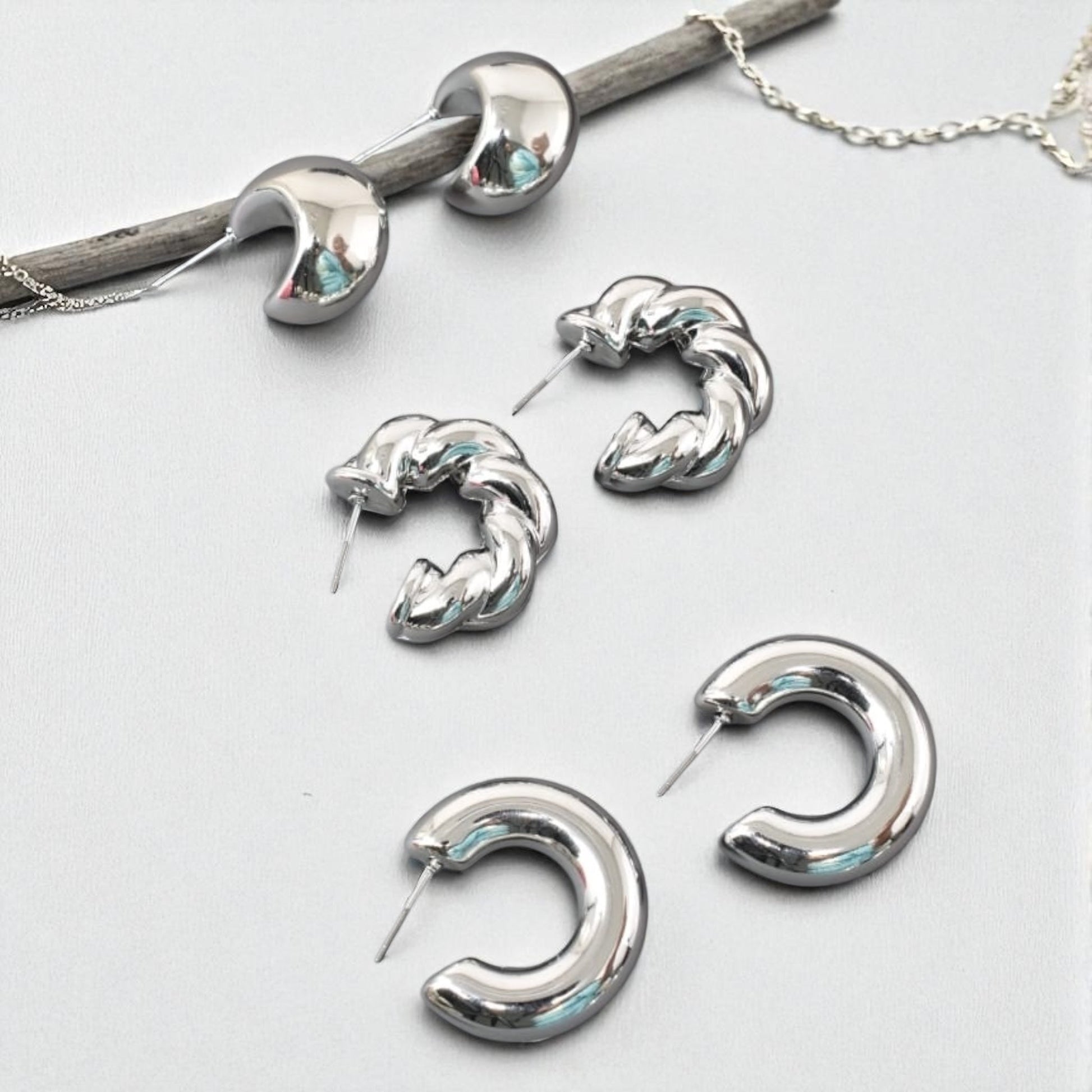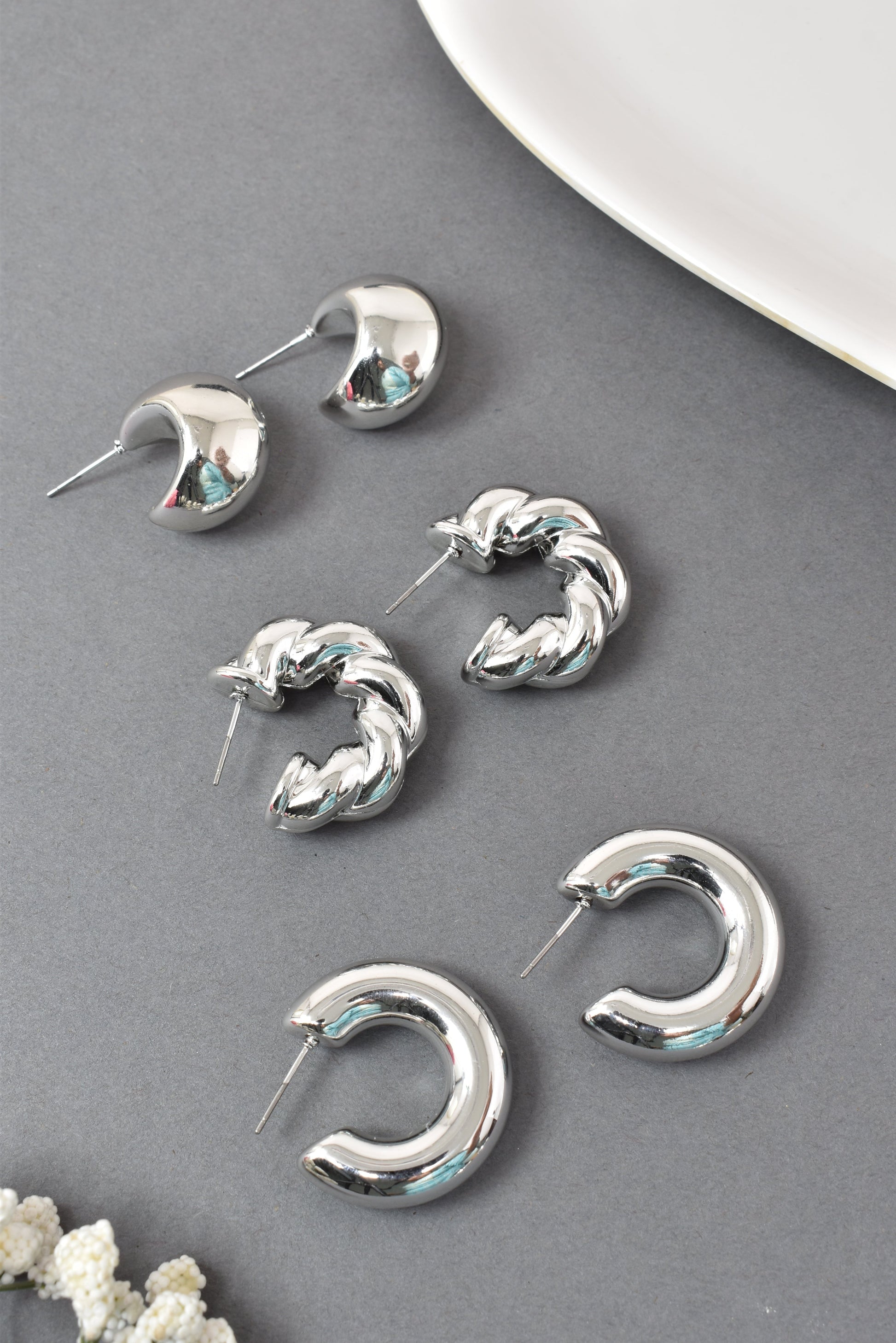 Anti Tarnish Stud Silver Plated Korean Minimal Tear Drop Pack of 3 earrings
