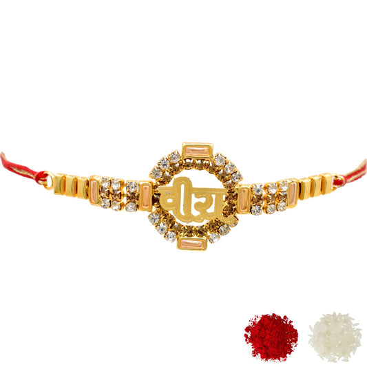 चमकदार हीरे की राखी - अमेरिकन डायमंड और CZ (क्यूबिक ज़िरकोनिया) पत्थरों से सजी शानदार डिज़ाइन वाली ये राखियाँ आधुनिक ग्लैमर और पारंपरिक भावना का सही मिश्रण हैं। अपने भाई को दिखाएँ कि वह आपके लिए कितना मायने रखता है, ऐसी राखी के साथ जो आपके बंधन की तरह चमकती है।