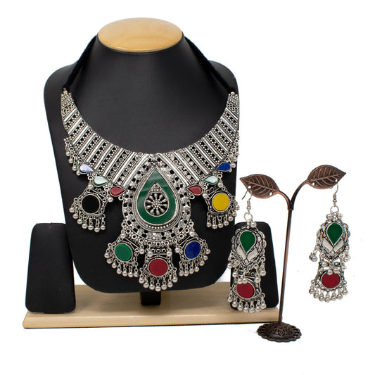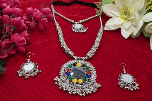 गुजरात में गरबा नृत्य के लिए पारंपरिक चांदी के ऑक्सोडाइज्ड आभूषण.. अब दुनिया भर में प्रसिद्ध है। घाघरा चोली के साथ मैचिंग