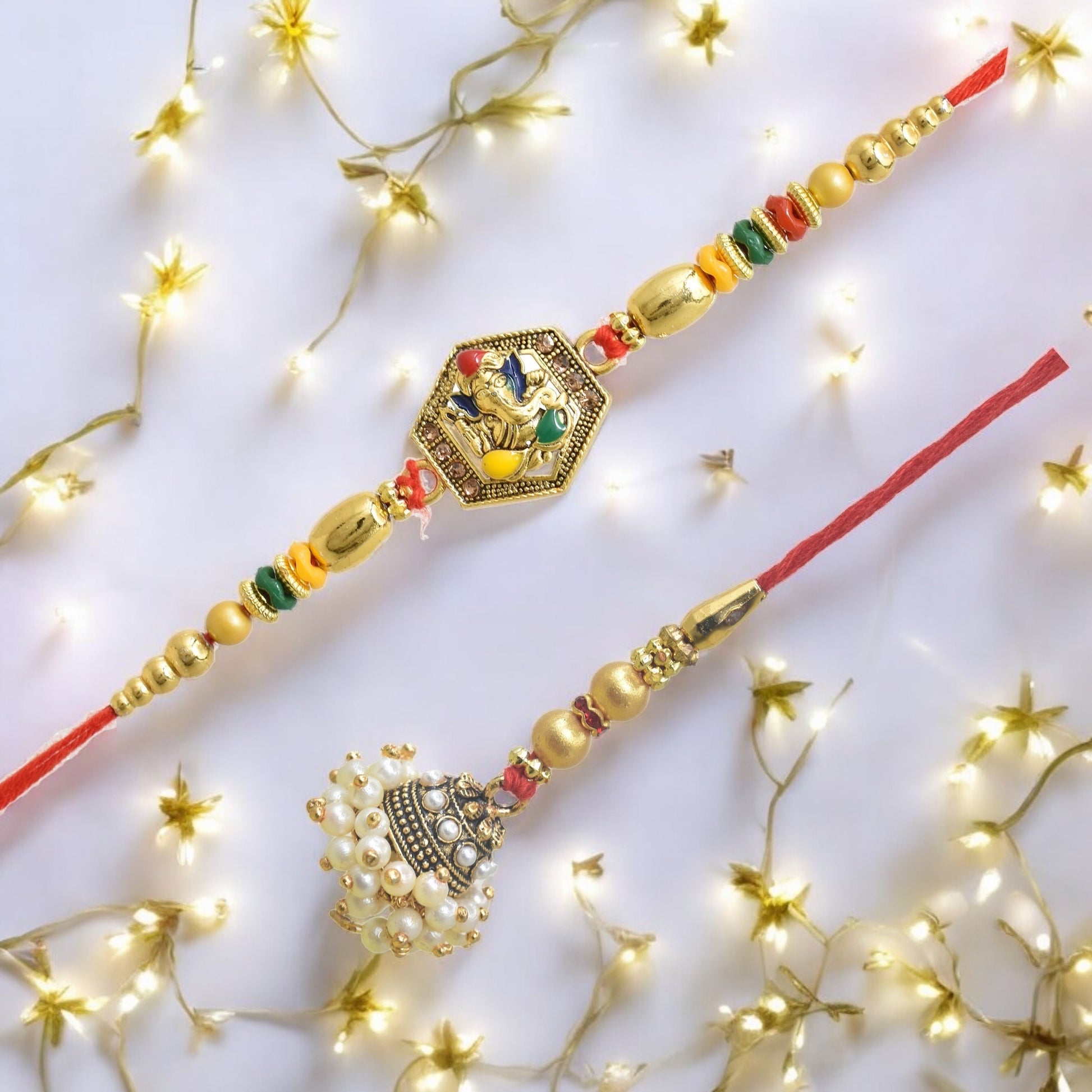 पारंपरिक गणेश डिज़ाइन भैया भाभी राखी सेट, रक्षाबंधन पर भाई के लिए 2 राखी का उत्तम सेट