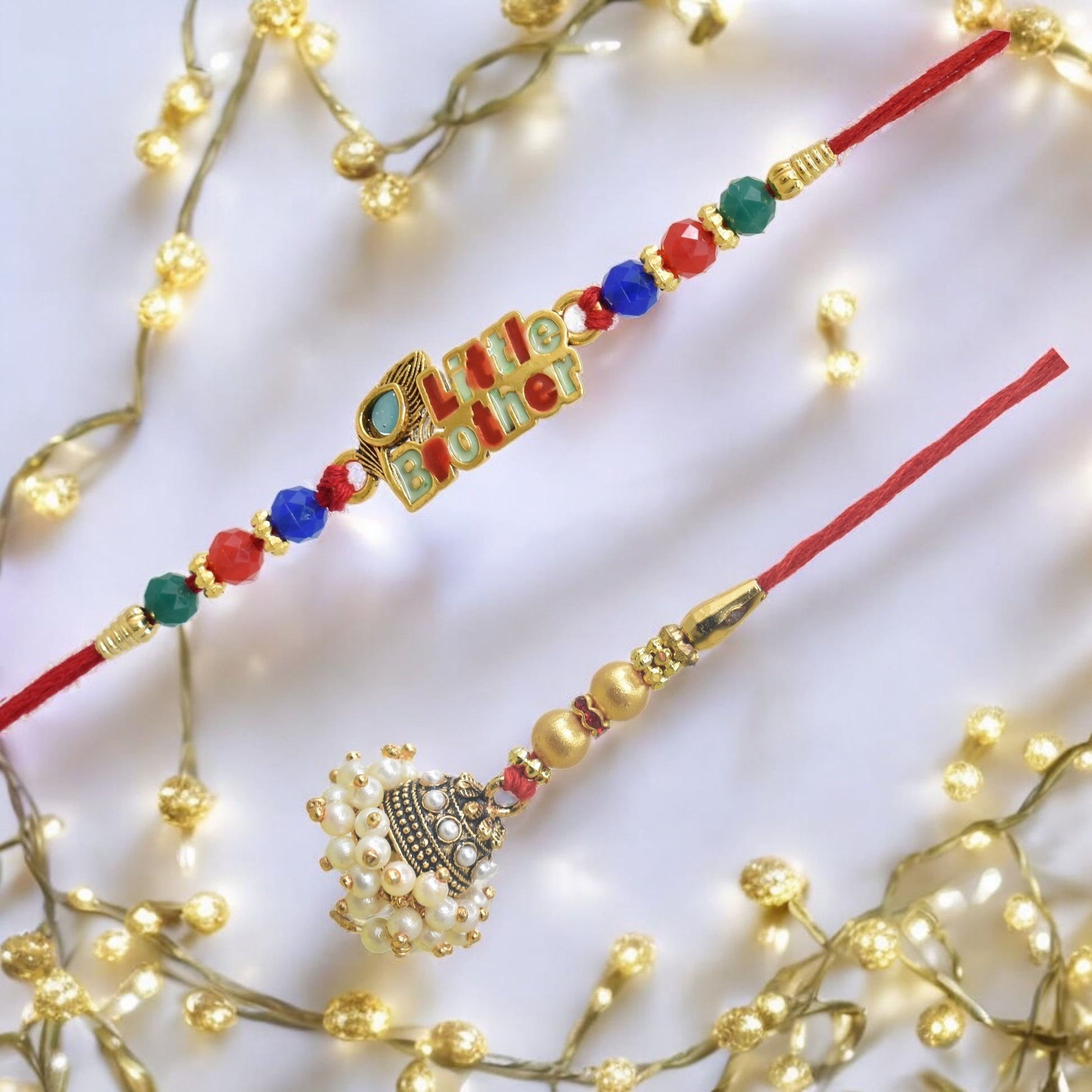 पारंपरिक छोटे भाई डिजाइन भैया भाभी राखी सेट, रक्षाबंधन पर भाई के लिए 2 राखी का उत्तम सेट