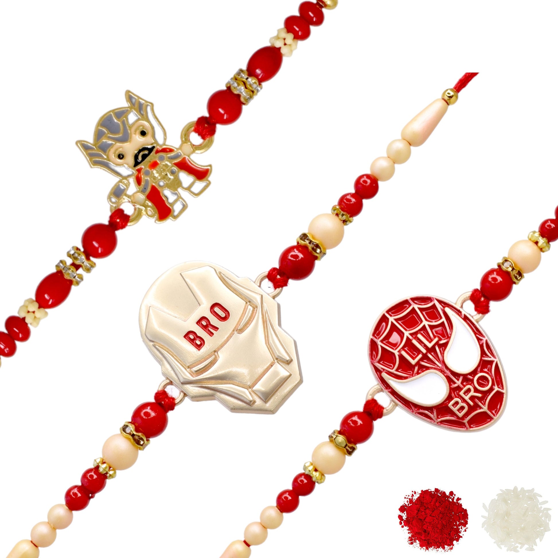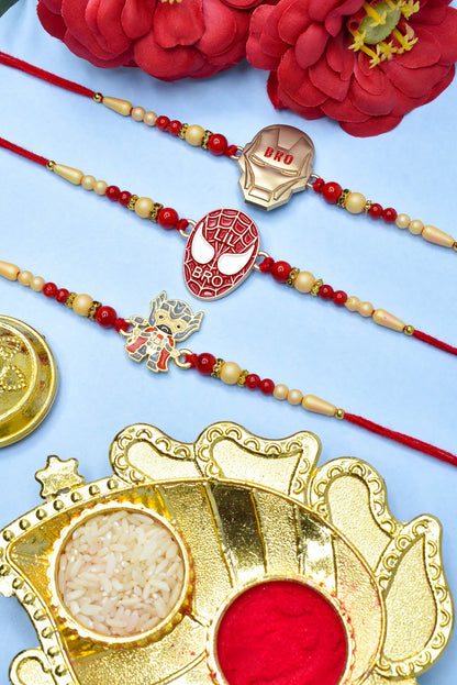Batman, Ironman, Spiderman Combo Set of 3 Rakhi with Roli Chawal & Gift Card Rakhi for Brother / Rakhi for Kids