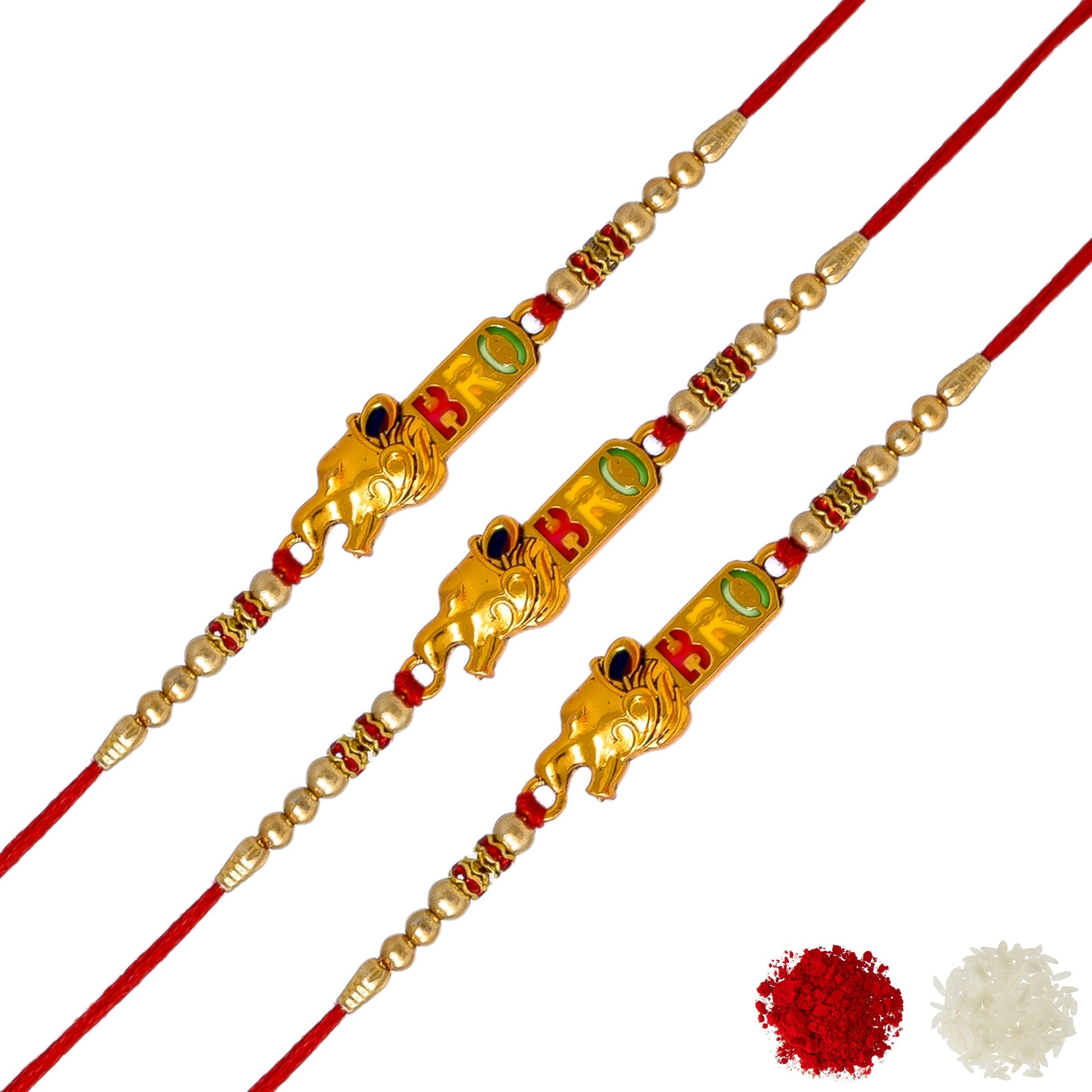BRO Combo of 3 Rakhi with Roli Chaval and Rakshabandhan Gift Card For Men n Boys