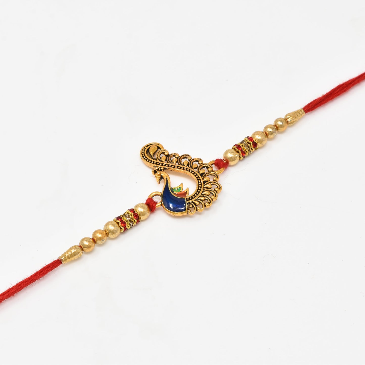 Peacock Meenakari Rakhi with Roli Chaval and Rakshabandhan Gift Card For Men n Boys