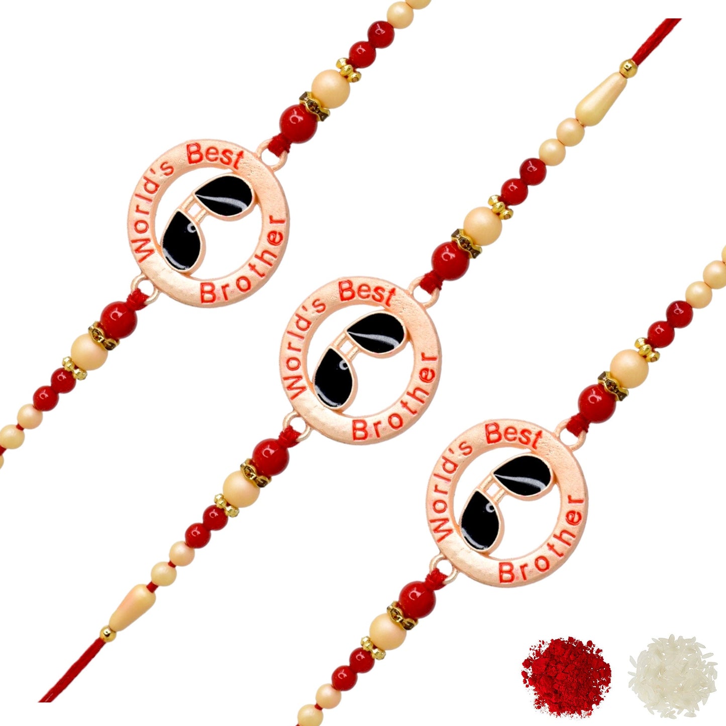 World's Best Brother Cartoon Rakhi Combo (Set of 3) with Roli Chawal and Greeting Card For Men Brother Kids